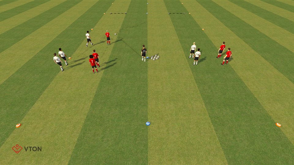 Na de oefening(en) passen de spelers de oefenstof toe in de partijvorm.